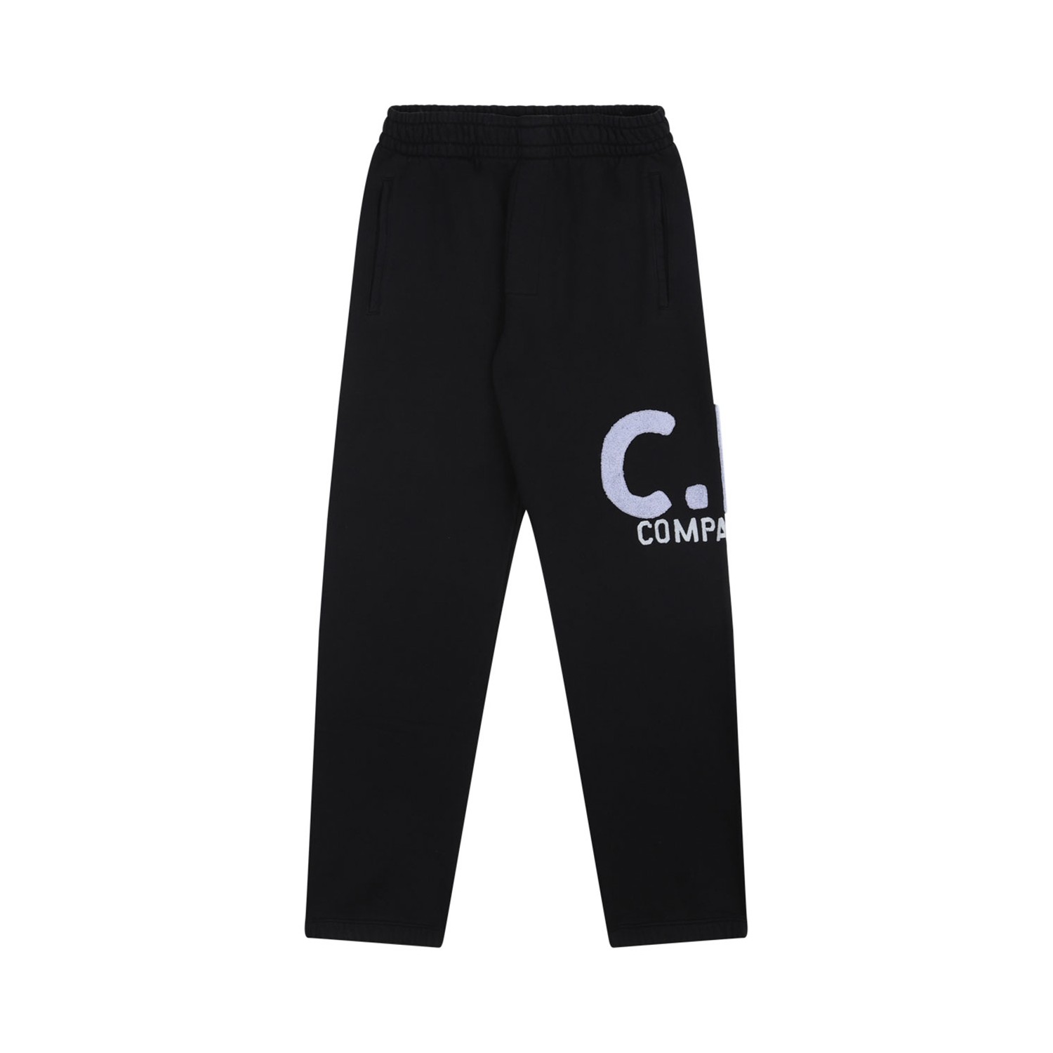 C.P. Company Kids Black Logo Print Sweatpant. Black cotton sweatpants, logo print to the side.