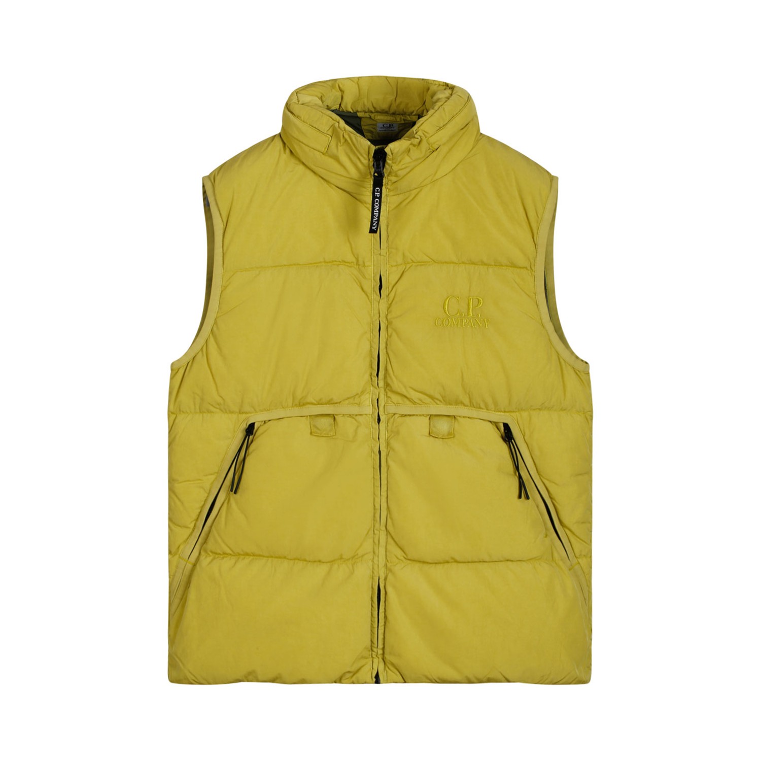 C.P. Company Kids Cypress Green Padded Gilet. Cypress green padded gilet, front zip fastening, logo embroidery to the front, sleeveless, two front pockets.