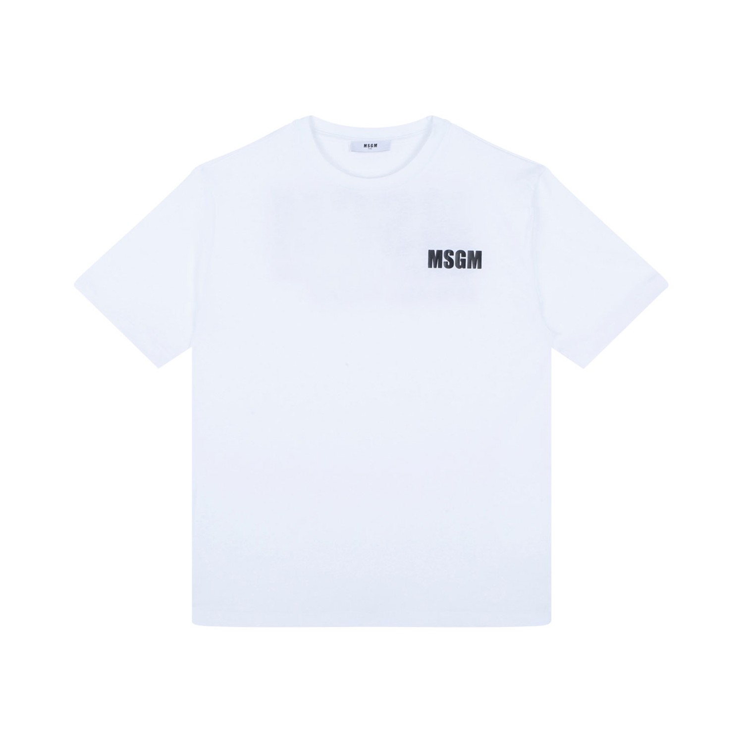 MSGM Kids White Logo Print T-Shirt. White cotton t-shirt, soft jersey, logo print at the chest, logo print to the rear. Crew neck, short sleeves, straight hem.