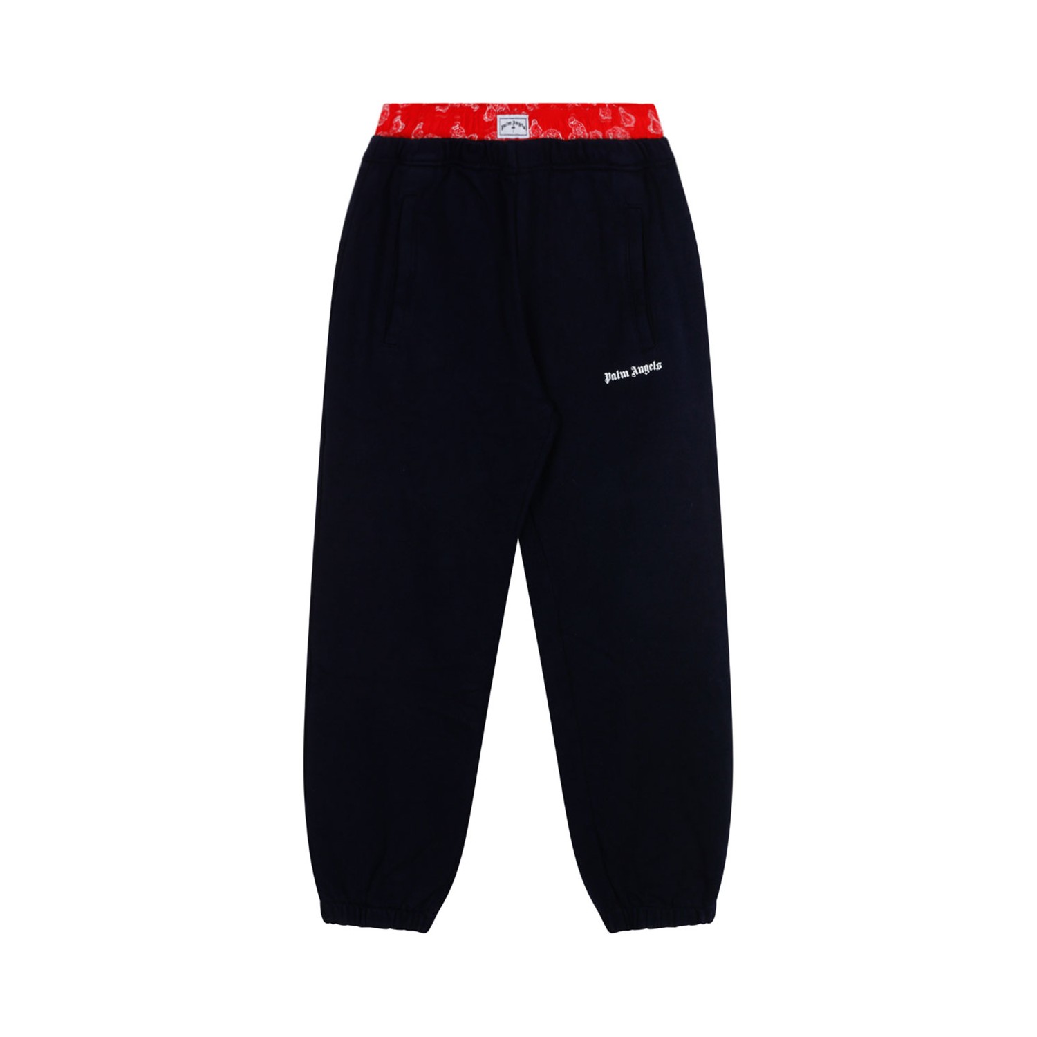 Palm Angels Kids Navy Blue and Red Cotton Track Pants. Navy blue and red cotton track pants, logo print to the front, teddy bear print, elasticated waistband, two front welt pockets, elasticated ankles.
