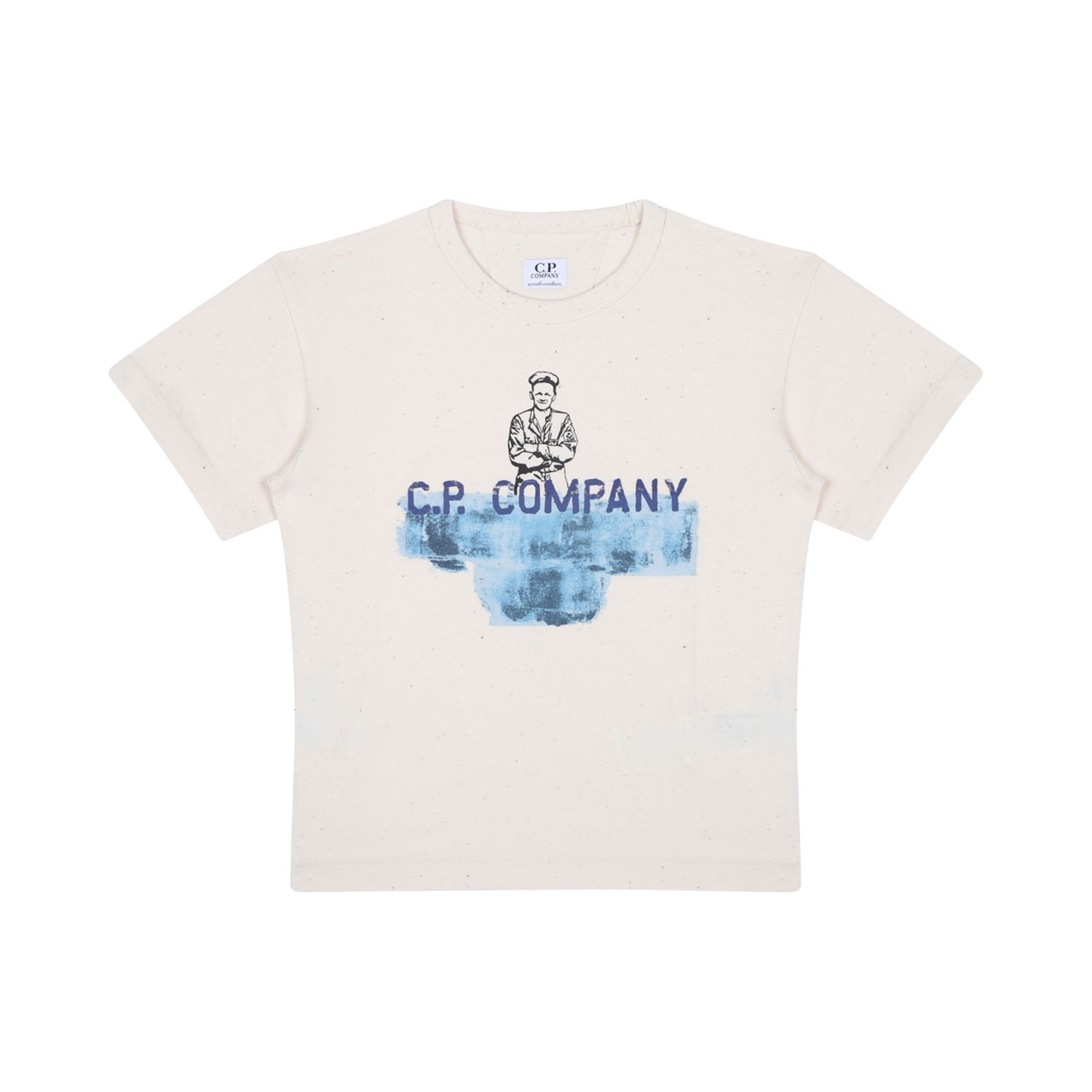 C.P. Company Kids Logo Print T-Shirt. Ecru cotton t-shirt with logo print to the front, crew neck, short sleeves, straight hem.