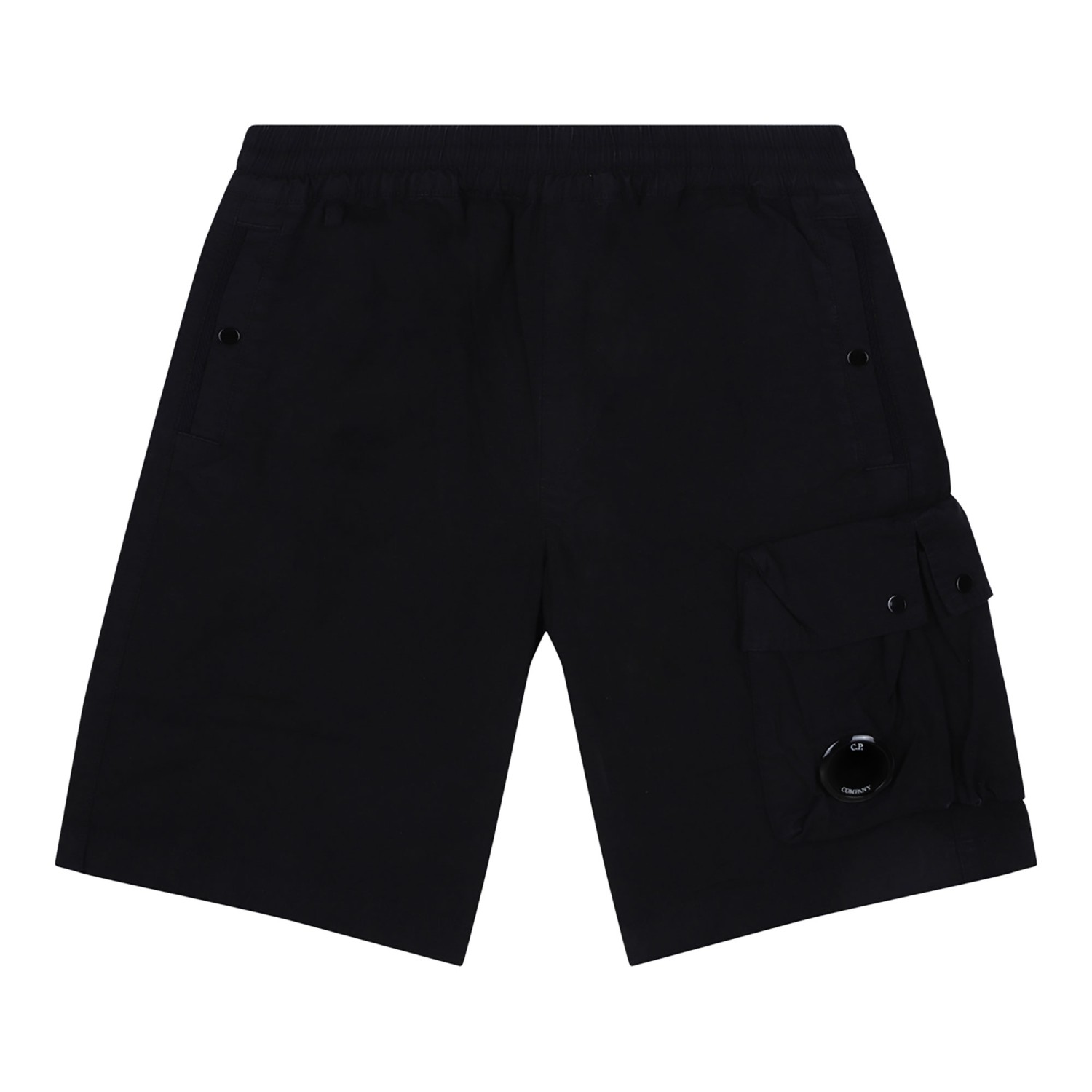 C.P. Company Kids Black Shorts. Black cotton short with logo patch to the side, elasticated waistband and cargo pocket.