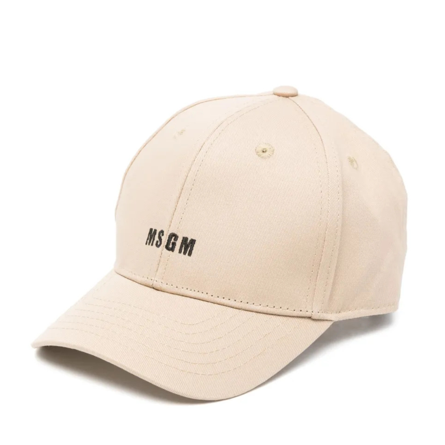MSGM Kids Beige Logo Embroidered Cap. Beige cotton cap with embroidered logo to the front, adjustable strap to the rear, round crown. Curved peakand eyelet detailing.