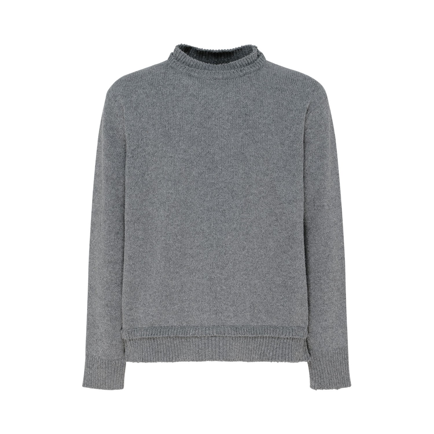 Maison Margiela Grey Knitted Jumper. Grey knitted construction jumper, crew neck, elbow patches, long sleeves and straight hem.