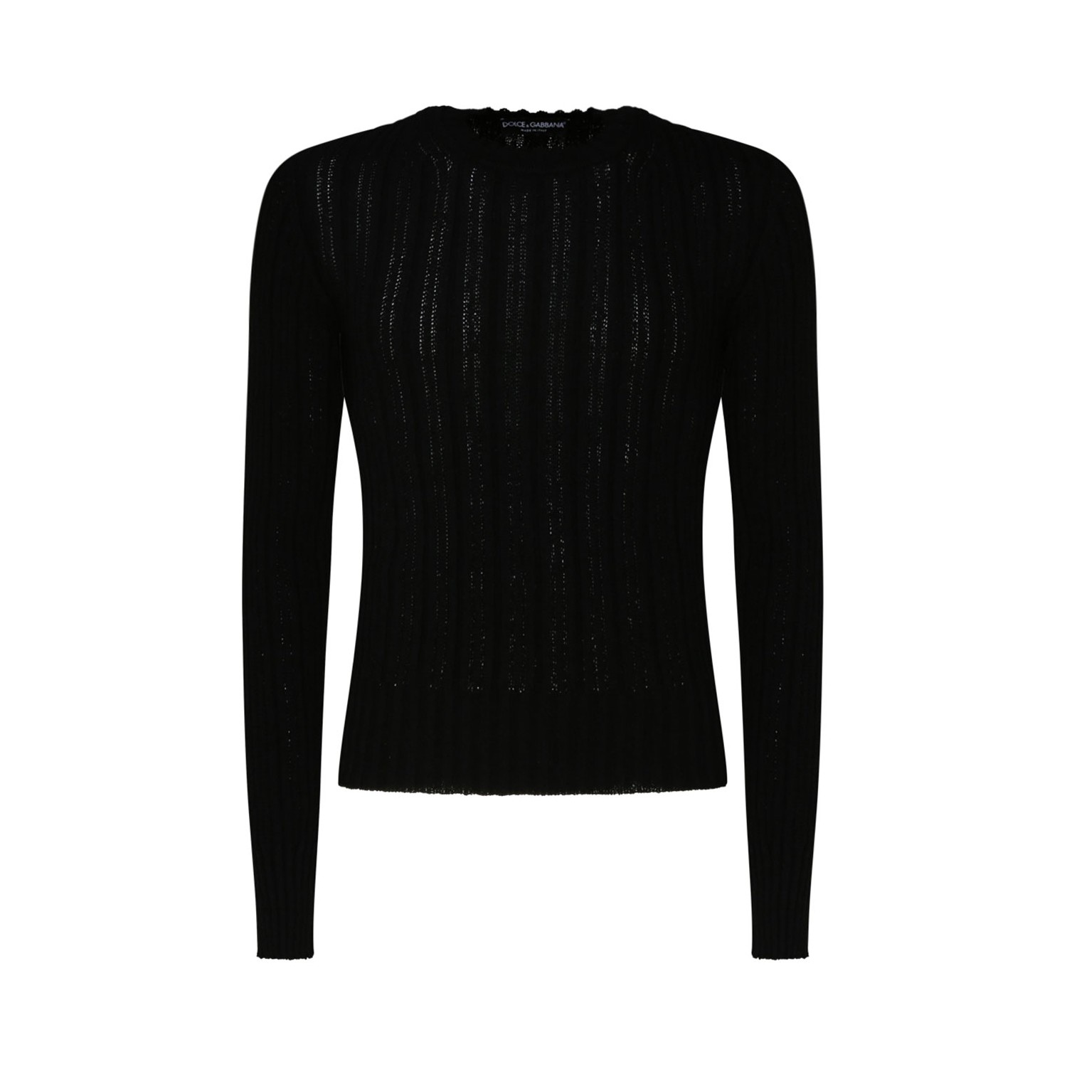 Dolce & Gabbana Black Cotton Blend Jumper. Black cotton blend jumper, ribbed knit, crew neck, extra long sleeves and straight hem.