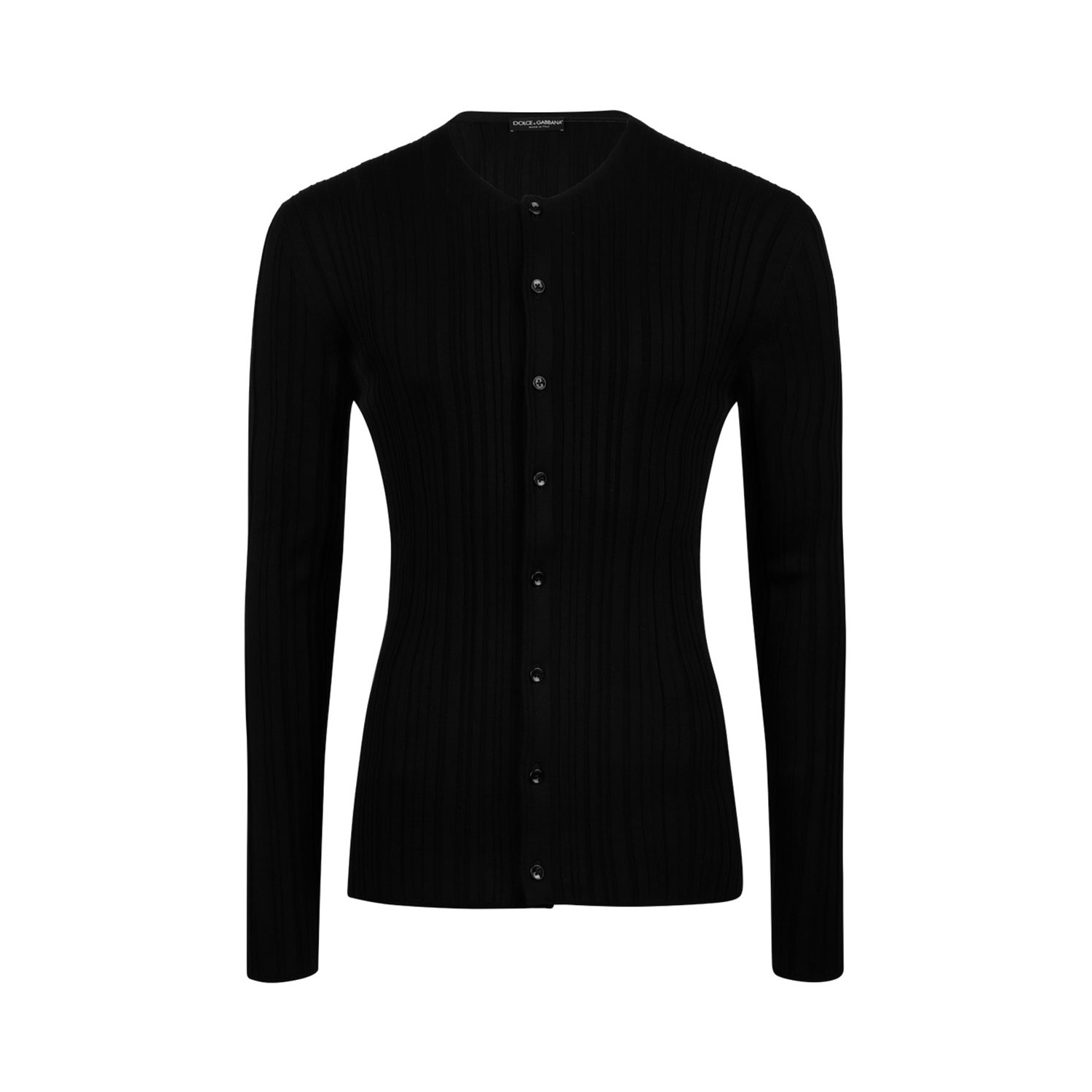 Dolce & Gabbana Black Silk Cardigan. Black silk cardigan with crew neck, long sleeves and front button fastening.
