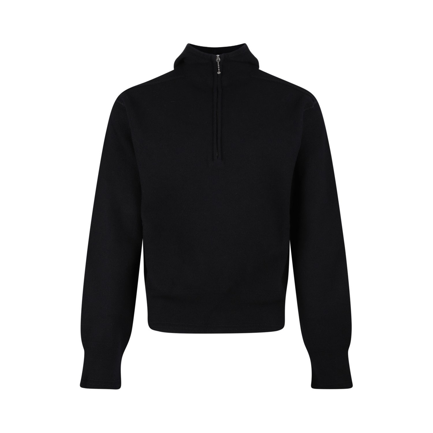 Burberry Black Wool Jumper. Black wool jumper with knitted construction, fine knit and high neck. Short front zip fastening, long sleeves and straight hem.
