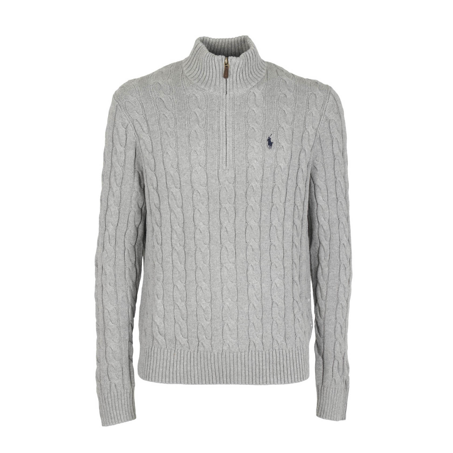 Polo Ralph Lauren Grey Half-Zip Knitted Sweater. Grey cotton hal zip knitted sweater with logo embroidered to the front.