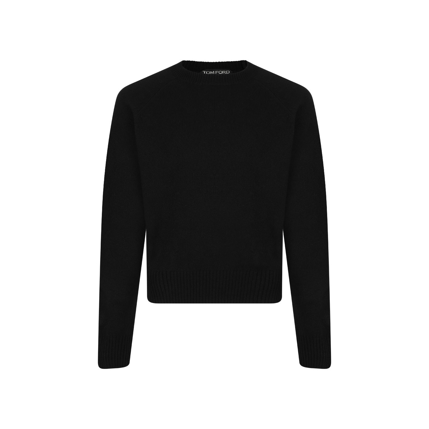 Tom Ford Black Raglan Sleeve Cashmere Sweater. Black cashmere sweater with raglan sleeves, crew neck, ribbed cuffs and ribbed hem.
