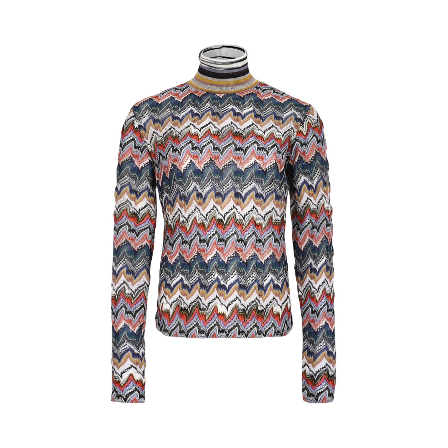 Missoni Multicolour Slim Fit High-Neck Sweater. Multicolour slim fit turtleneck sweater with raschel knit in embroidered lace, viscose blend with lame threads.