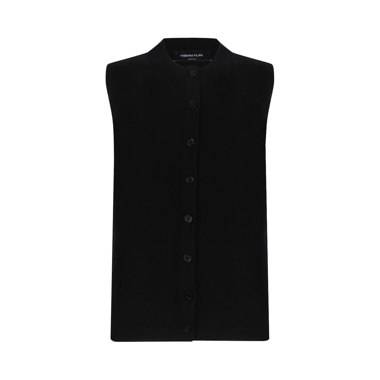 Fabiana Filippi Black Sleeveless Knit Vest. Black knit vest with front button fastening, sleeveless.