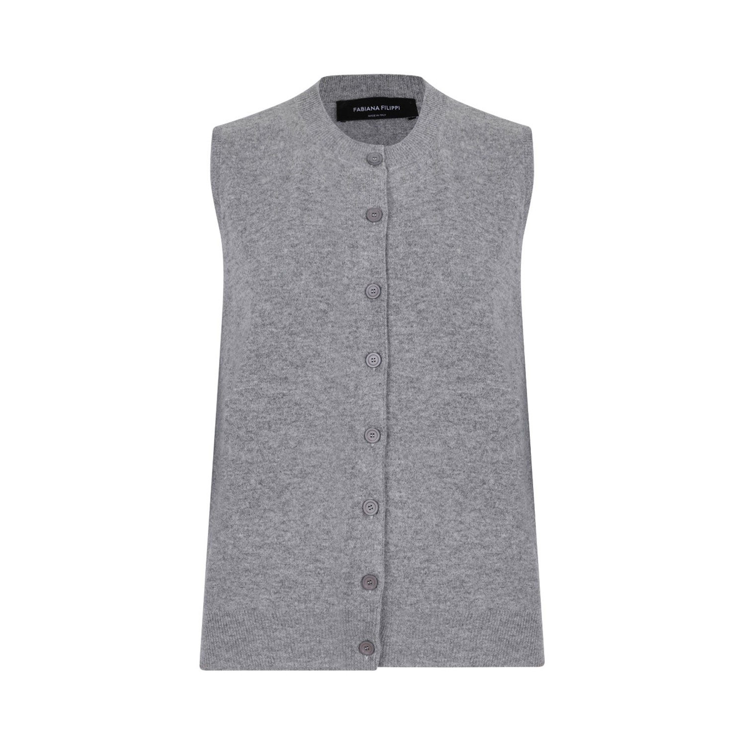 Fabiana Filippi Grey Sleeveless Knit Vest. Grey knit vest with front button fastening, sleeveless.