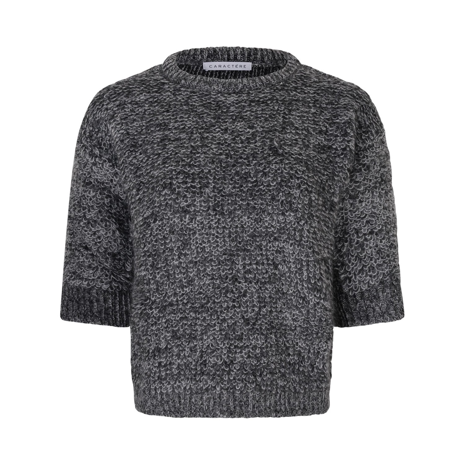 Caracter Grey Knitwear Sweater. Grey knitwear sweater with crew neck, three quarter sleeves, ribbed hem.