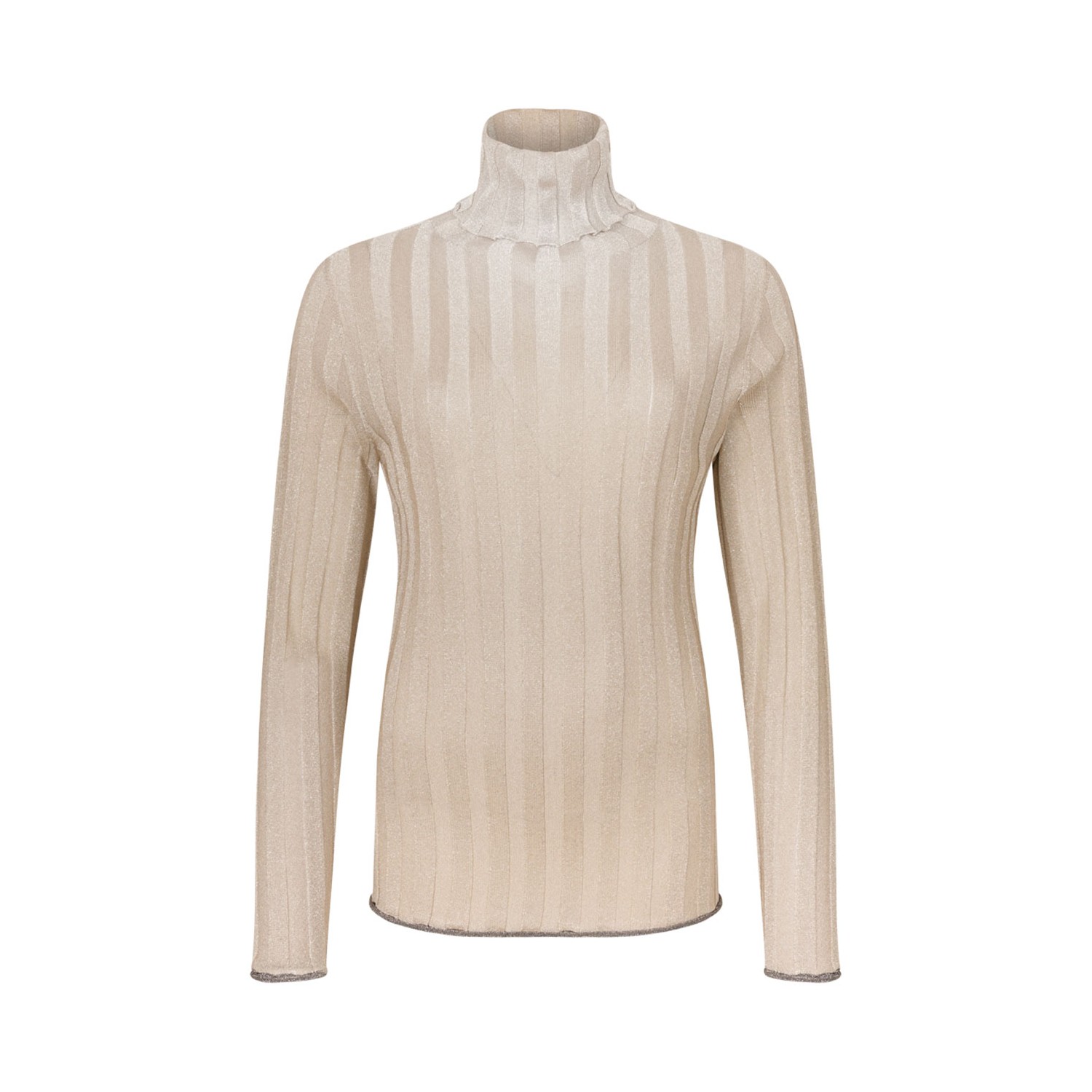 Fabiana Filippi Beige High Neck Knitwear. Beige knitwear sweater with high neck and long sleeves.