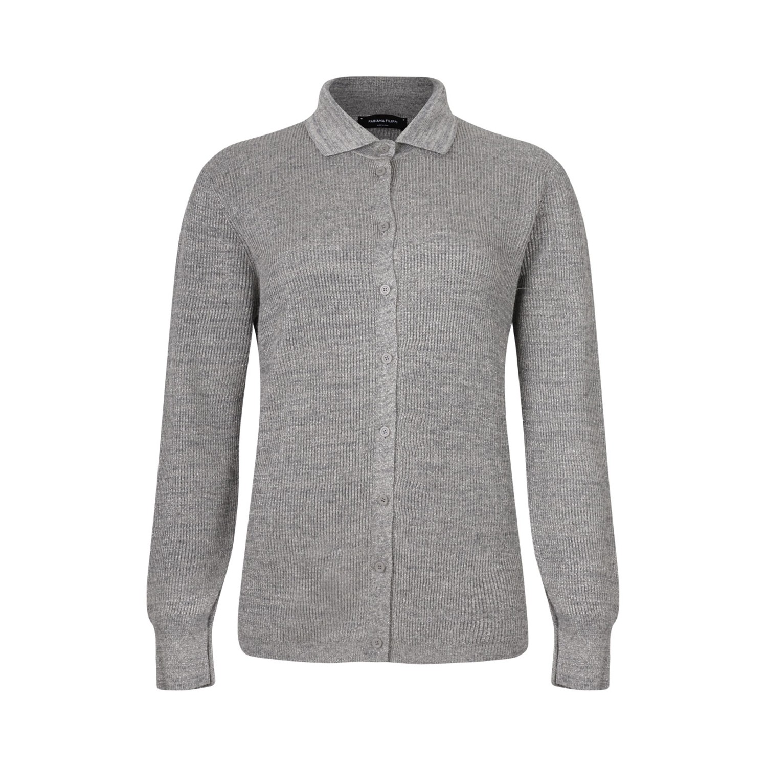 Fabiana Filippi Light Grey Knitwear Polo Shirt. Light grey knitwear polo shirt with polo collar, long sleeves, front button fastening, ribbed hem.