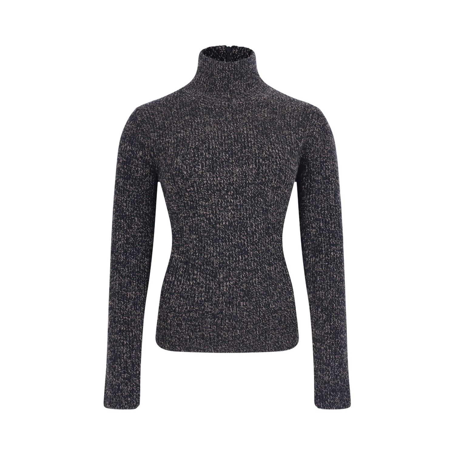 Max Mara Turtleneck In Wool And Cashmere Mouline. Turtleneck sweater featuring a ribbed finish that highlights the silhouette. Fitted line, high neck, long sleeves. Half zip on the back of the neck with personalized enamel slider.