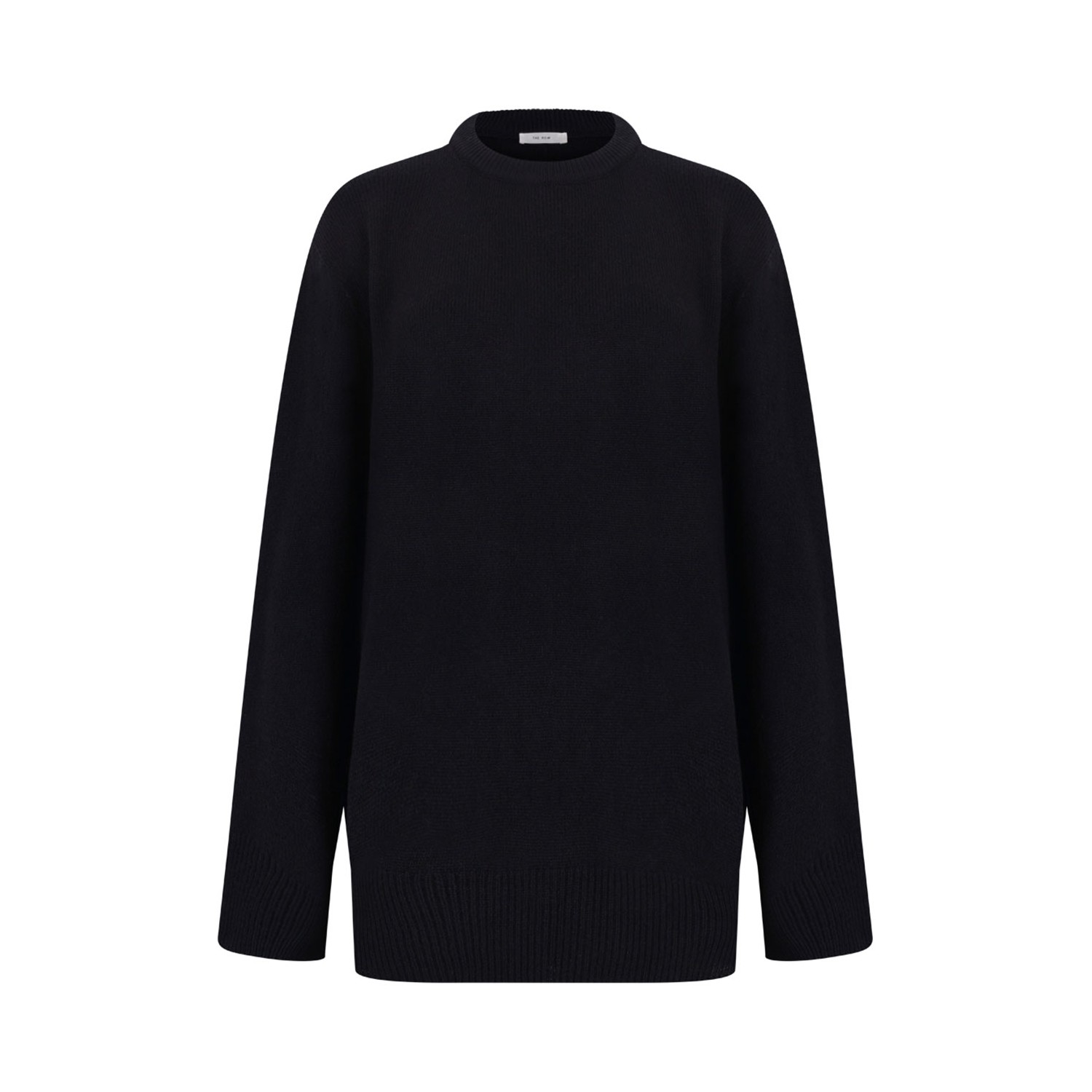 The Row Essentials Black Sweater. Black crew neck sweater in a medium-weight wool and cashmere knit with a ribbed neckline, cuffs and hem.