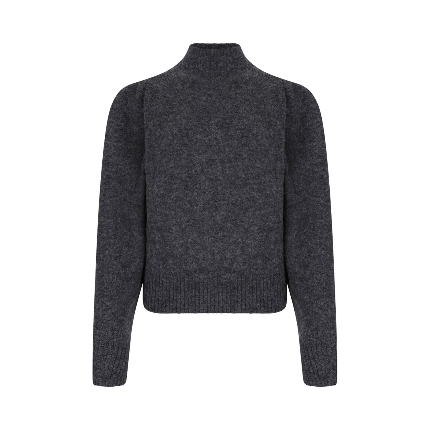 Isabel Marant Dark Grey Purdie Sweater. Dark grey alpaca sweater with high neck, gathered detailing, long sleeves and ribbed trim.