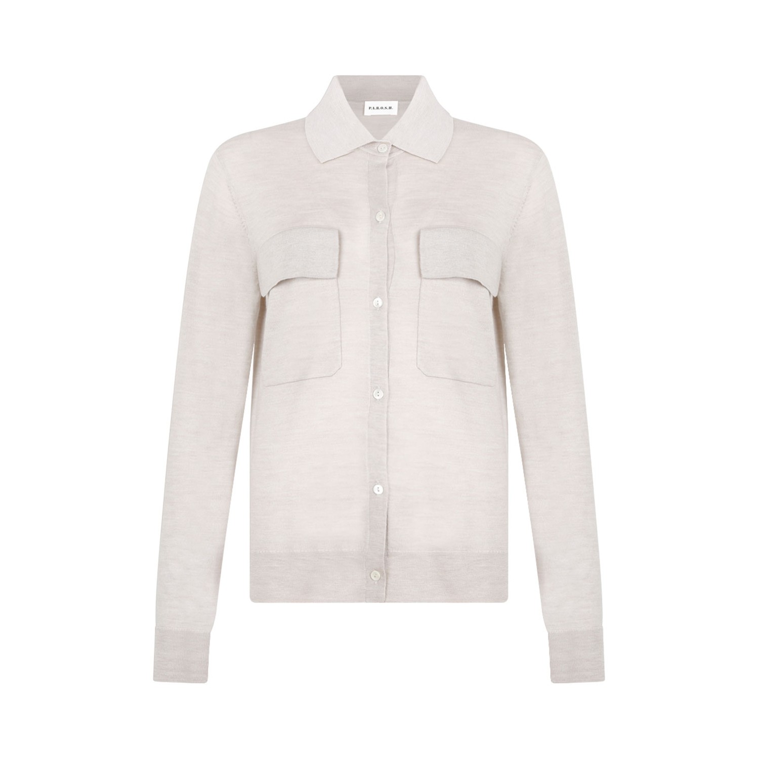 P.A.R.O.S.H. Ivory White Knitwear Shirt. Ivory white knitwear shir with front button fastening, classic collar, long sleeves and two pockets to the front.