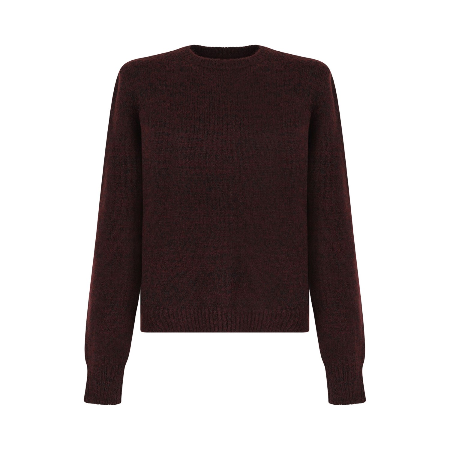 Maison Margiela Bordeaux Four Stitch Logo Jumper. Bordeaux virgin wool jumper with four-stitch logo, ribbed cuffs, brushed finish and round neck.