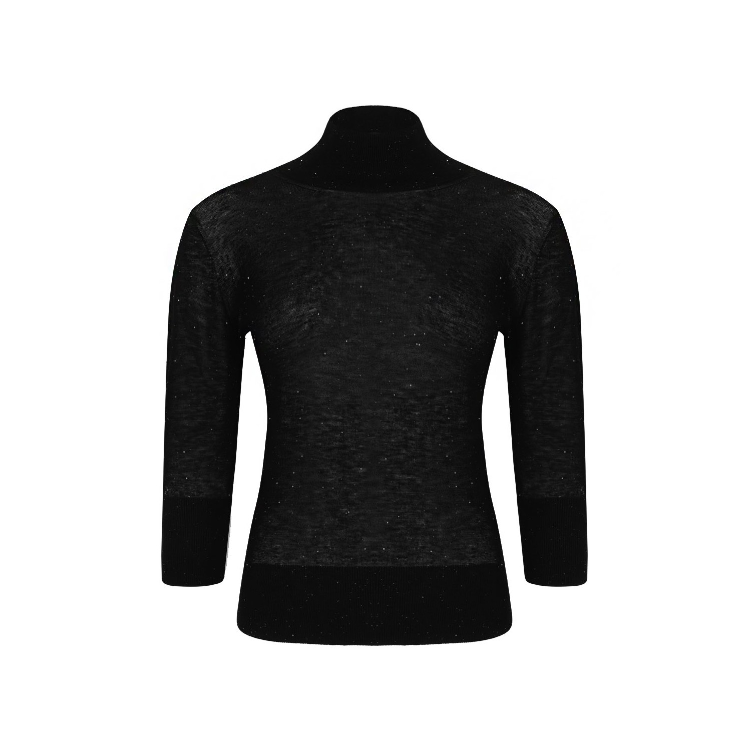 Genny Black Sequin Embellished Top. Black sequin embellished top with mock neck and three-quarter sleeves.