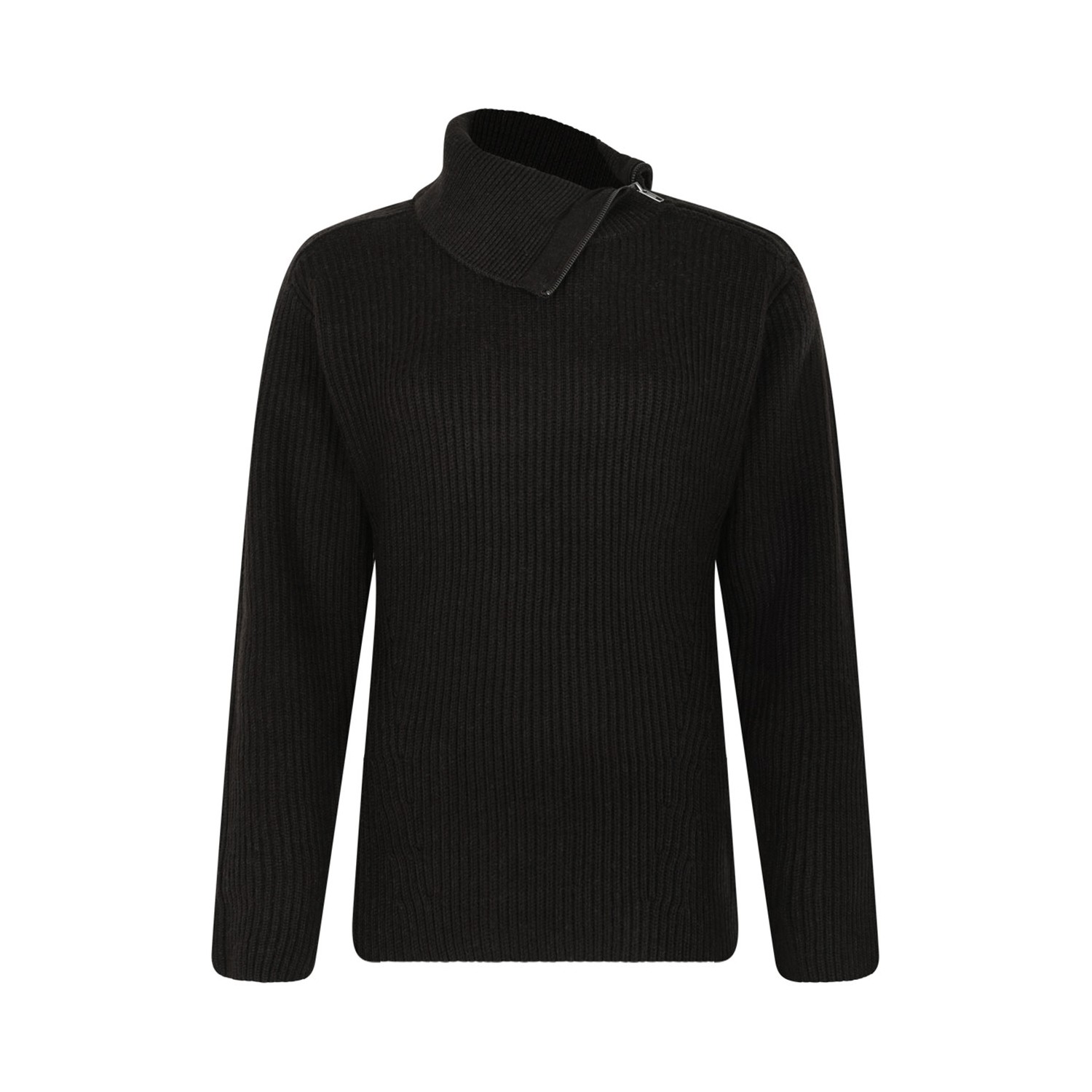 P.A.R.O.S.H. Brown Ribbed Wool Sweater with Asymmetric Collar. Brown sweater in ribbed wool featuring long sleeves and straight hem. Asymmetric high collar with folded design and zip detail at the neckline. Minimalist silhouette with structured texture.