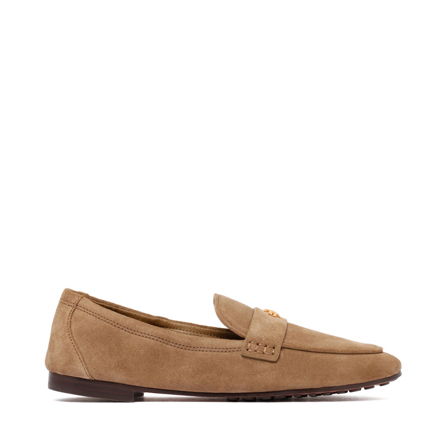 Tory Burch Light Brown Loafers. Light brown calf leather loafers, slip on style, gold tone logo plque and gum rubber sole.