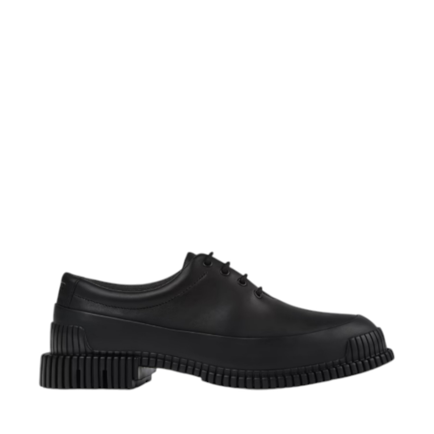 Camper Black Pix Leather Shoes. Women's black calfskin shoes with OrthoLite Recycled insoles and XL EXTRALIGHT EVA outsoles.