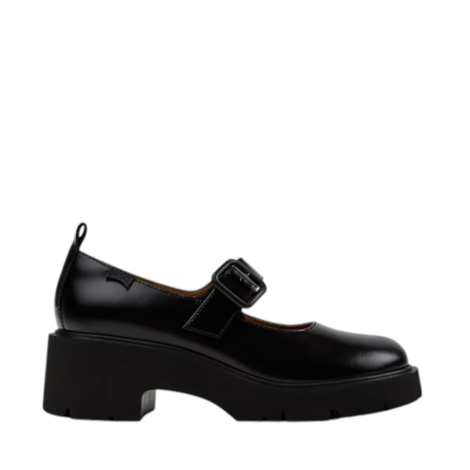 Camper Black Milah Leather Shoes. Women's black calfskin shoes with OrthoLite Recycled insoles and EVA outsoles.