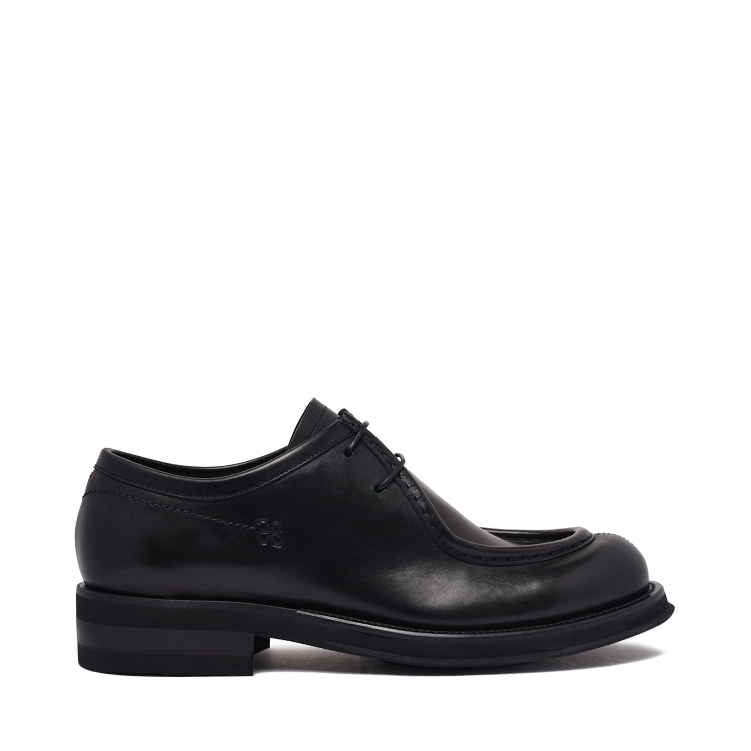 Fabi Black Loafers. Black leather loafers, front lace up fastening, slip on style, round toe, low heel.