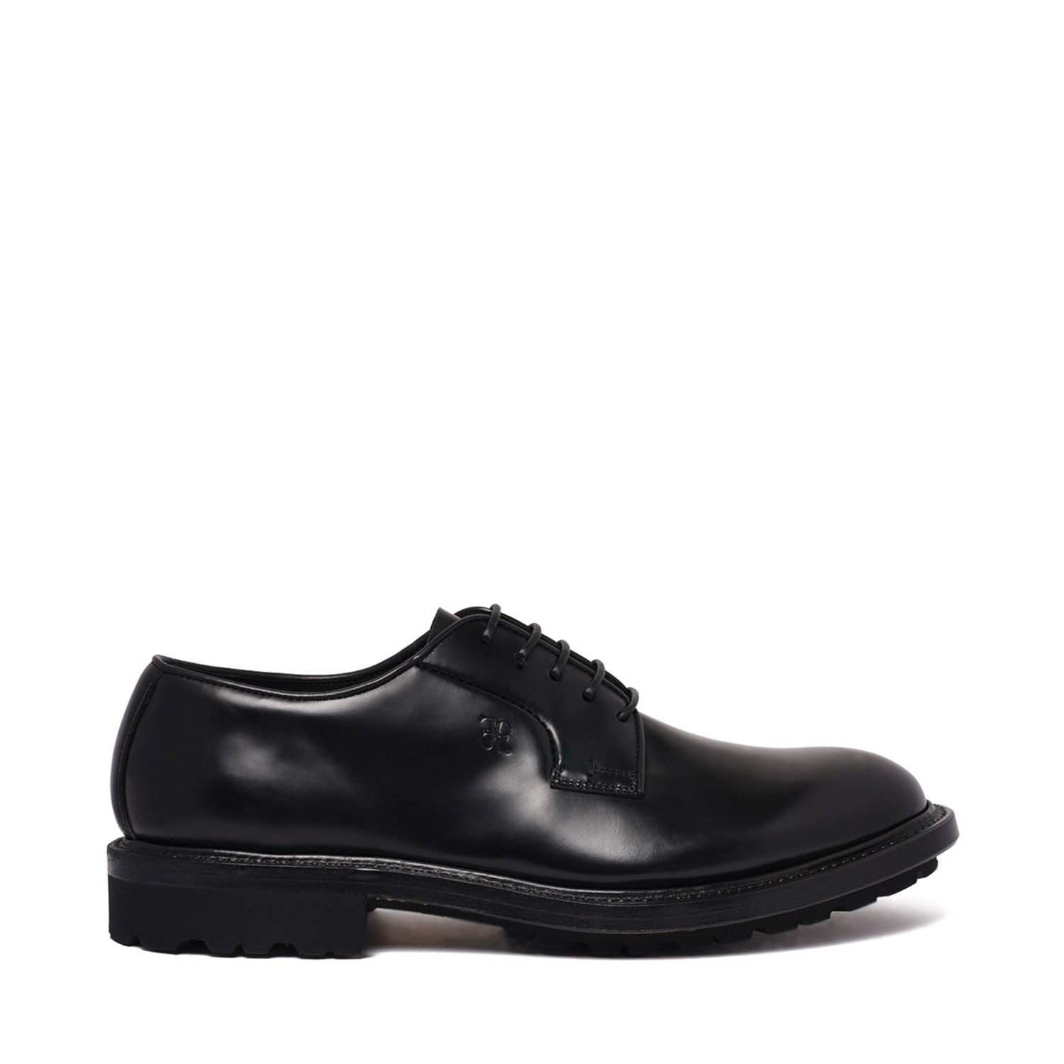 Fabi Black Oxford Loafers. Black leather loafers, front lace up fastening, slip on style, round toe, low heel.