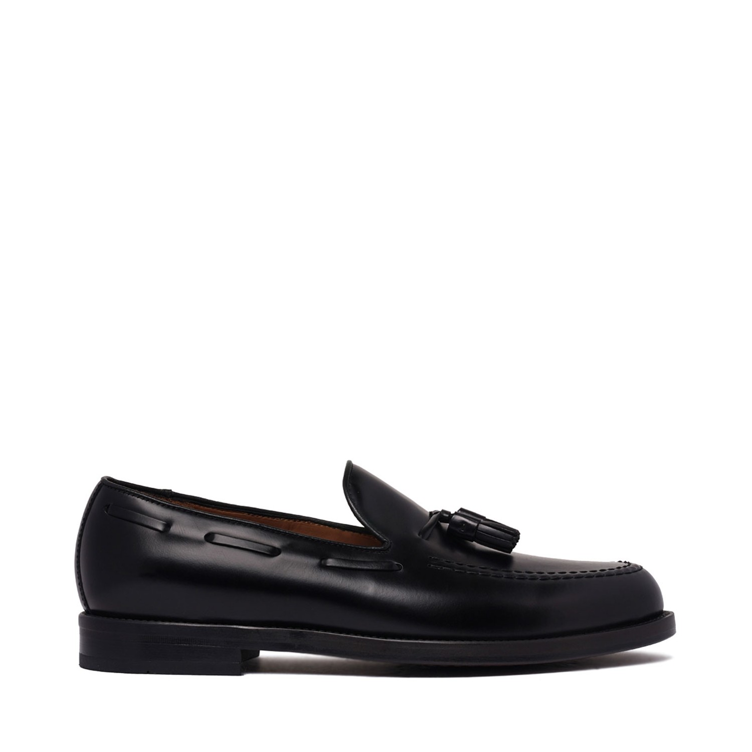 Lottusse Class Tassel Loafers in Black Cowhide Leather. These sophisticated Lottusse men's loafers are crafted from premium, high-quality leather with a luxurious, polished finish. Their comfortable slip-on design allows for easy on and off. They're elegant in style, featuring embellished details and two decorative leather pompoms, perfect for formal events and professional settings. The traditional black colorway offers a classic look.