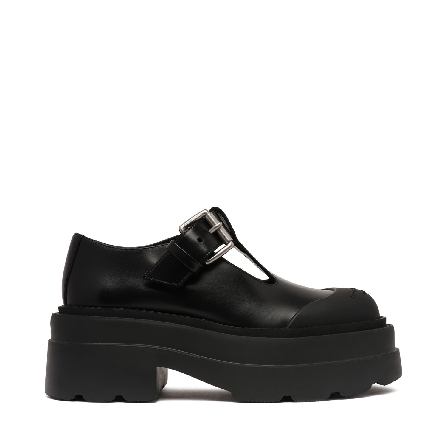 Alexander Wang Black Tova Loafers. Black leather Tova loafer with buckle fastening, platform sole, branded insole.