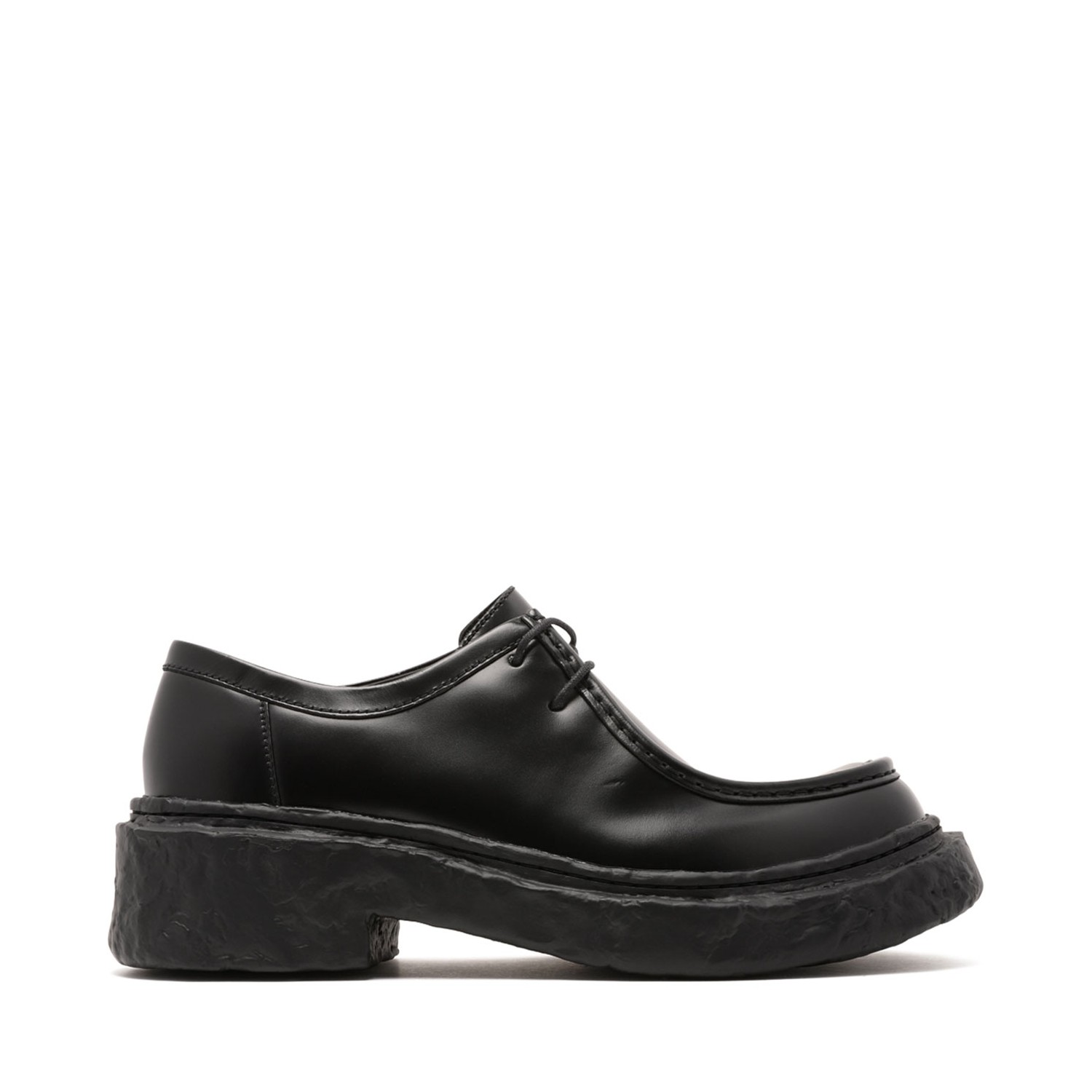 CamperLab Black Leather Vamonos Lace-Up Shoes. Black calfskin leather lace-up shoes with OrthoLite Recycled footbeds and PU outsoles.