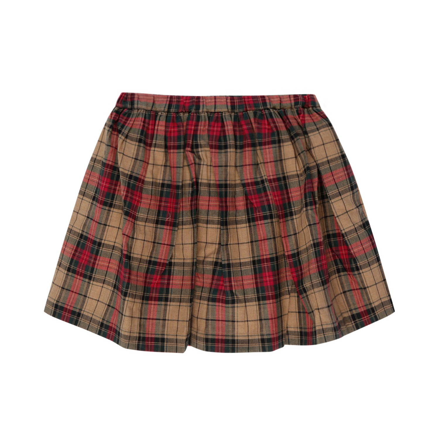 Bonpoint Brown and Multicolour Tartan Pleated Skirt. Brown and multicolour pleated skirt, tartan check pattern, A line.