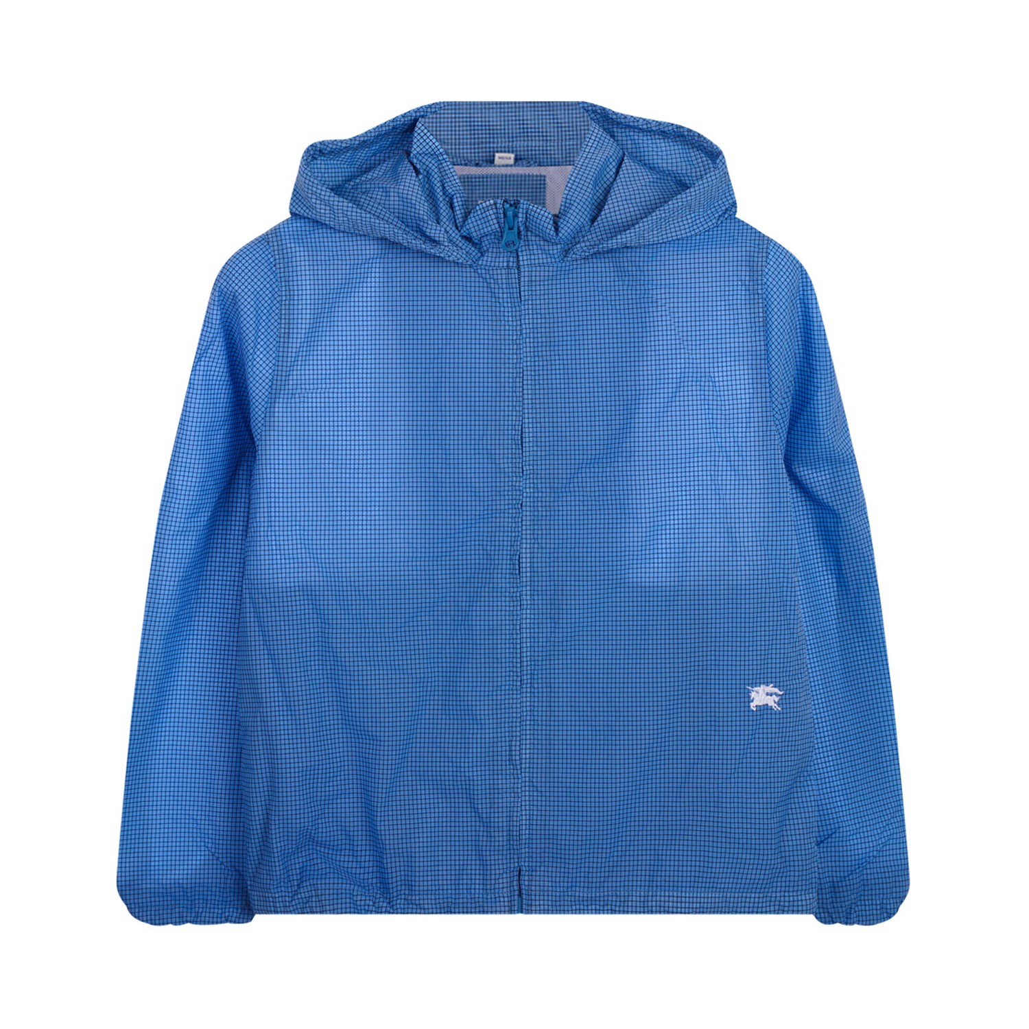 Burberry Kids Blue Jacket. Blue nylon jacket, classic hood, front zip fastening, long sleeves, elasticated cuffs, straight hem.