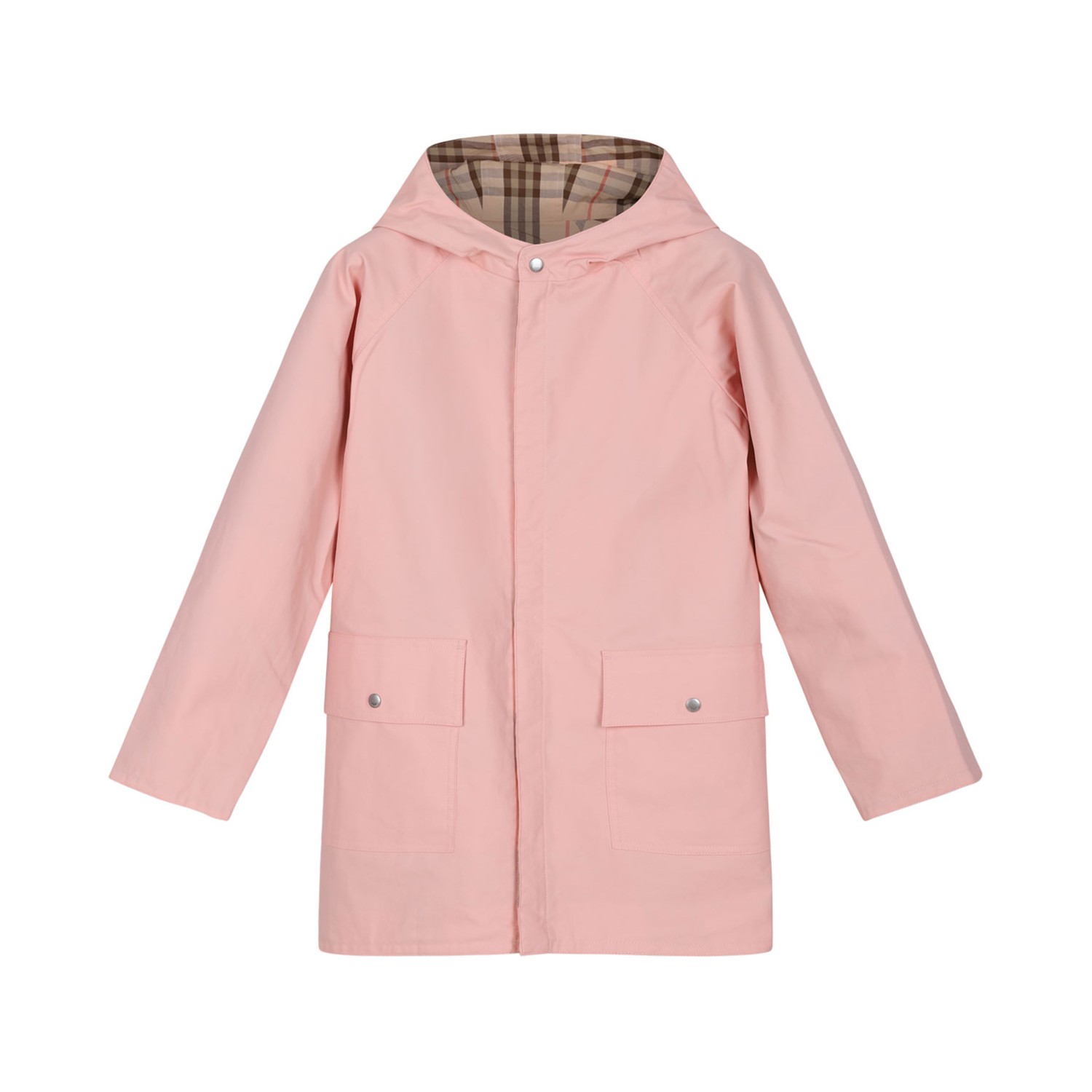 Burberry Kids Reversible Checked Coat. Light pink reversible coat, front press-stud and zip fastening, classic hood, two front flap pockets, long sleeves.