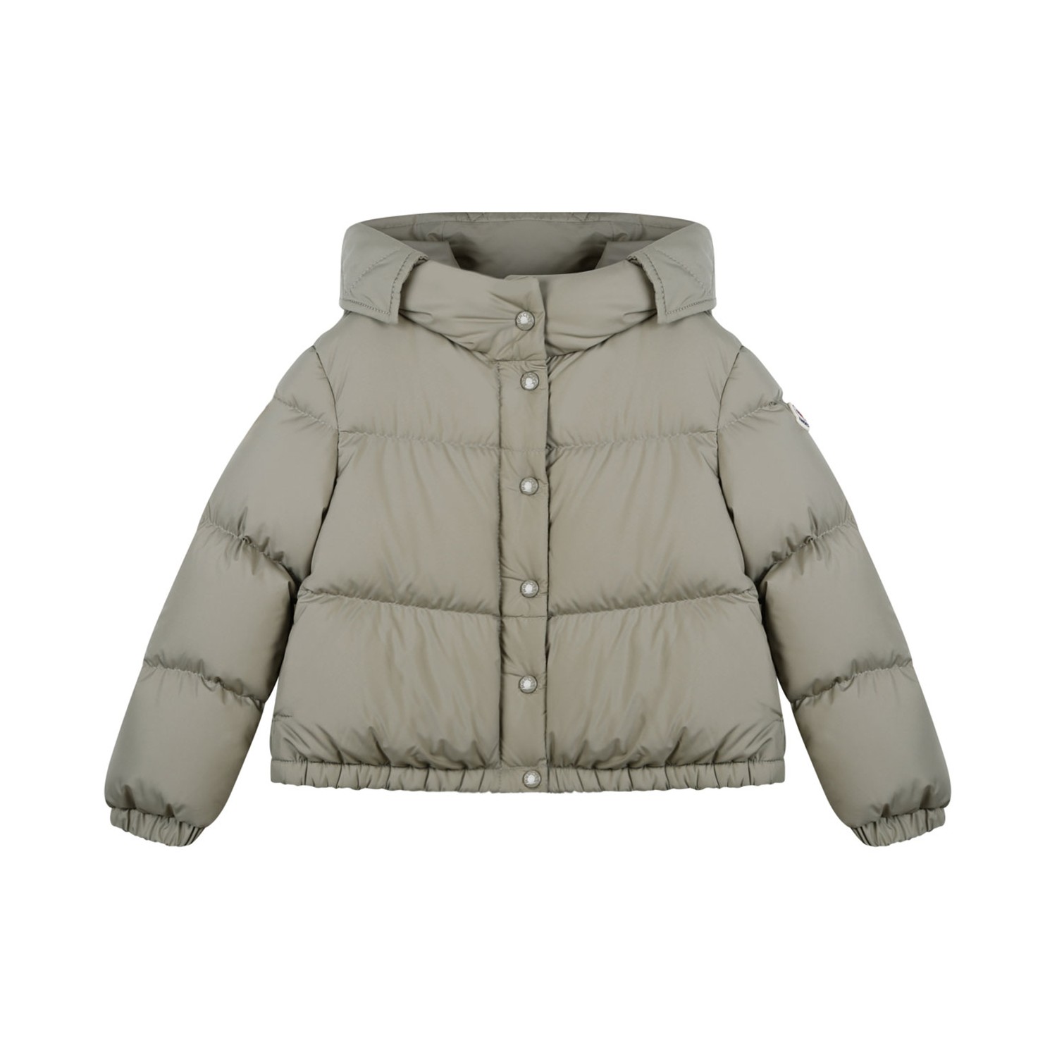 Moncler Enfant Padded Jacket. Padded jacket crafted from polyester, nylon lining, down-filled. Hood with polyester lining, zip and snap button closure. Pockets with snap button closure, elastic cuffs and hem.