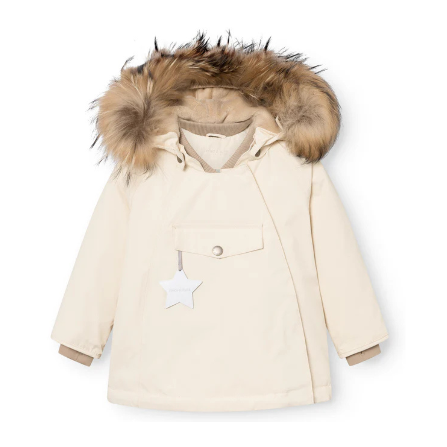 Mini A Ture Angora Cream MATWANG Fleece Lined Winter Jacket. Angora cream iconic winter jacket perfect for wind- and waterproof, breathable, and tested to keep warm down to -25 degrees Celsius. The jacket opens at the front.