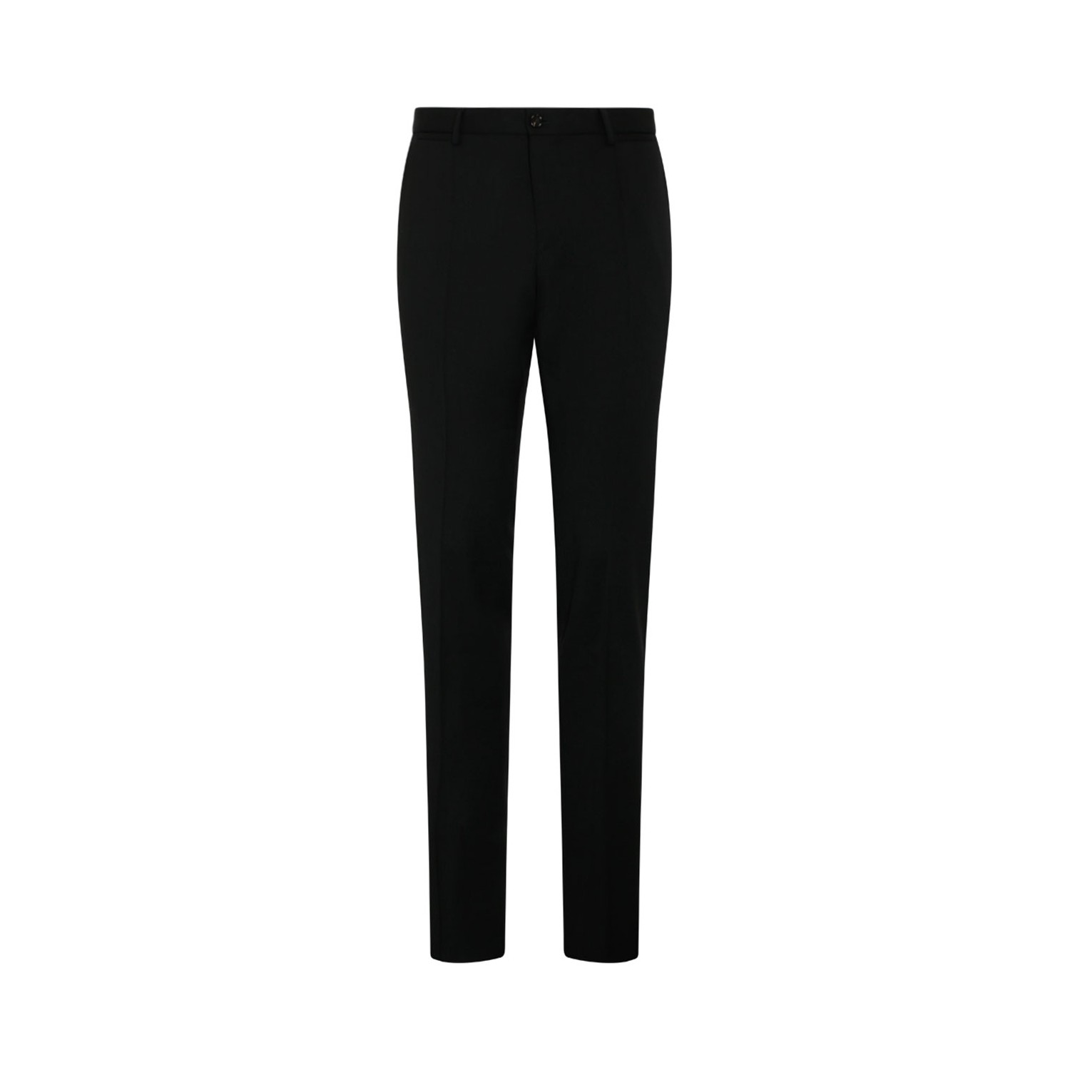 Dolce & Gabbana Black Stretch Wool Tailored Trousers. Black stretch wool trousers, front button and zip closure, belt loops, front slant pockets, back welt pockets with button.