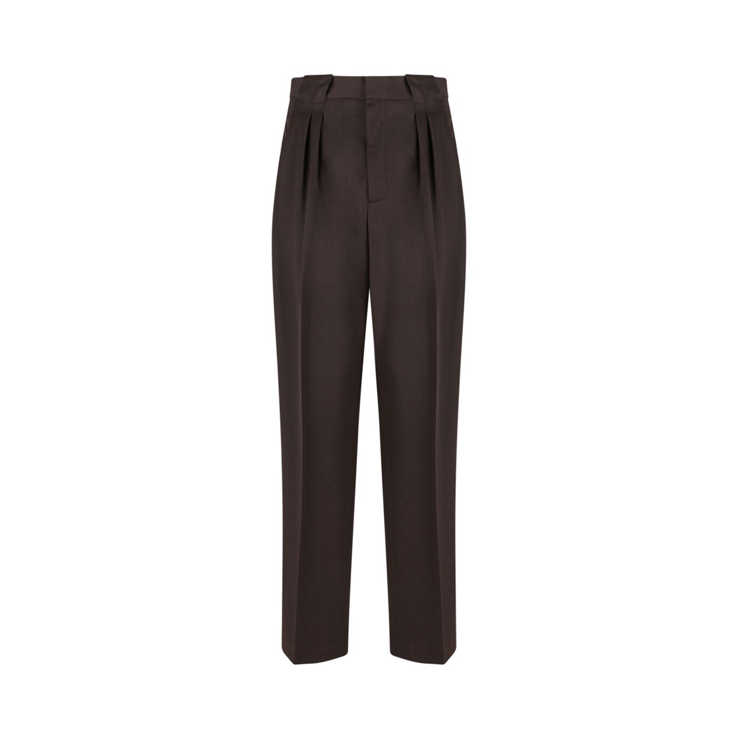 Casablanca Pleated Trousers. Chocolate brown pleated trousers with front hook and zip fastening. Belt loops and two side welt pockets.