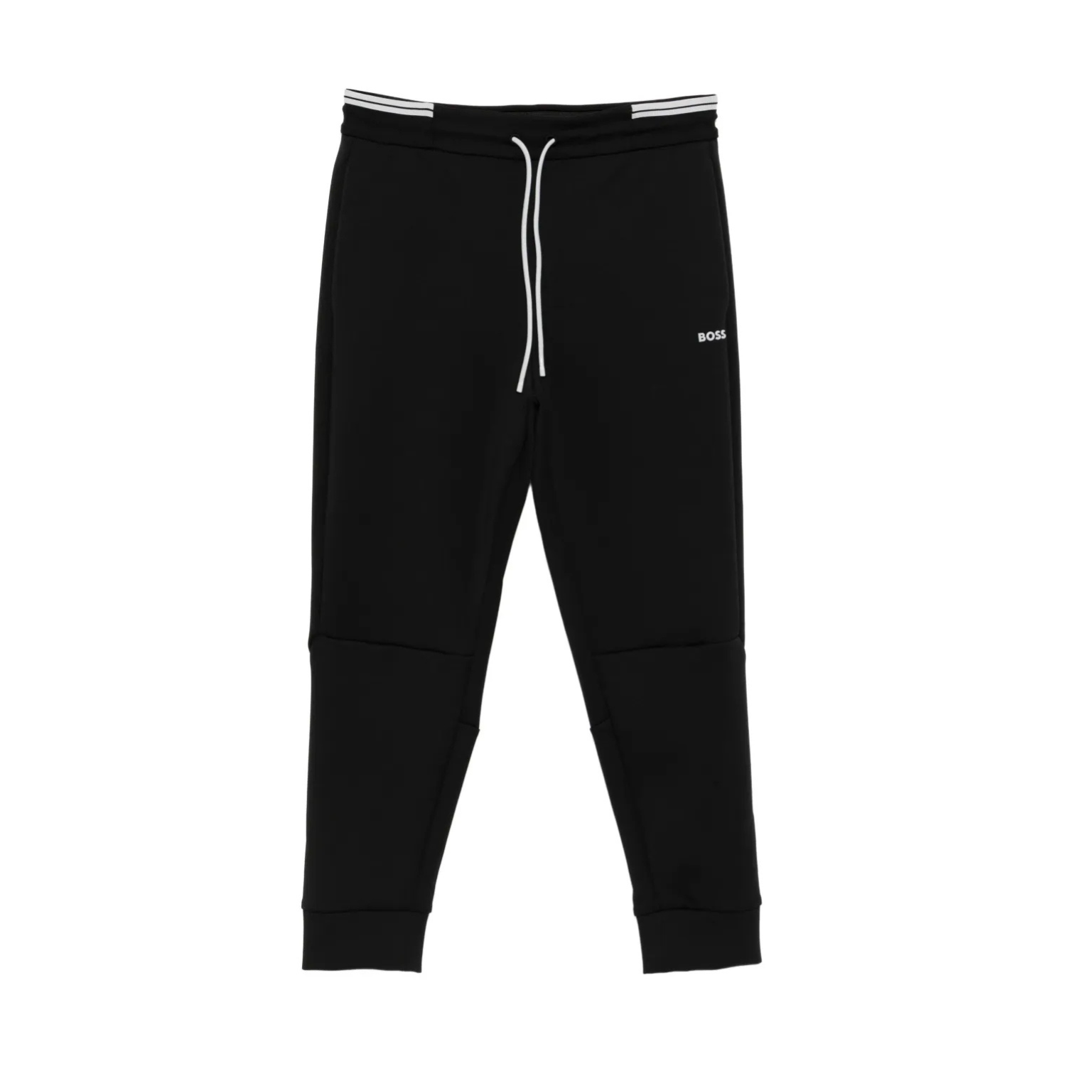 Boss Green Black Sweatpants With Embossed Logo. Black cotton sweatpants with embossed logo, elasticated drawstring waist, two side welt pockets and back welt pocket.