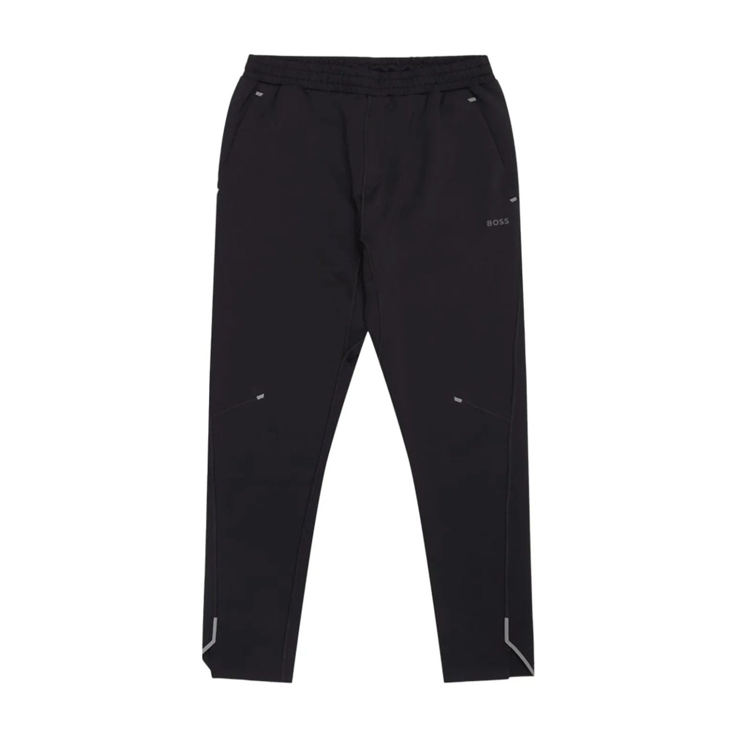 Boss Green Black Sweatpants With Decoration. Black sweatpants with elasticated waist, two side pockets, back pocket with zip and ribbed cuffs.