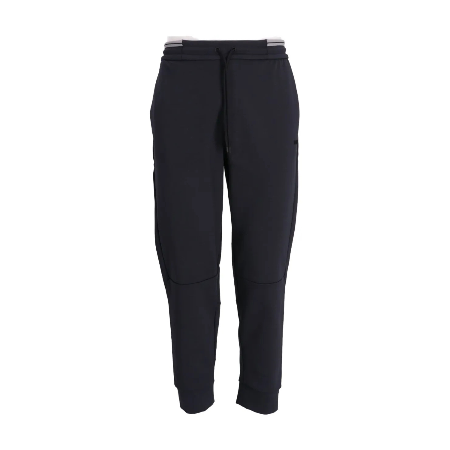 Boss Green Dark Blue Sweatpants With Embossed Logo. Dark blue cotton sweatpants with embossed logo, elasticated drawstring waist, two side welt pockets and back welt pocket.