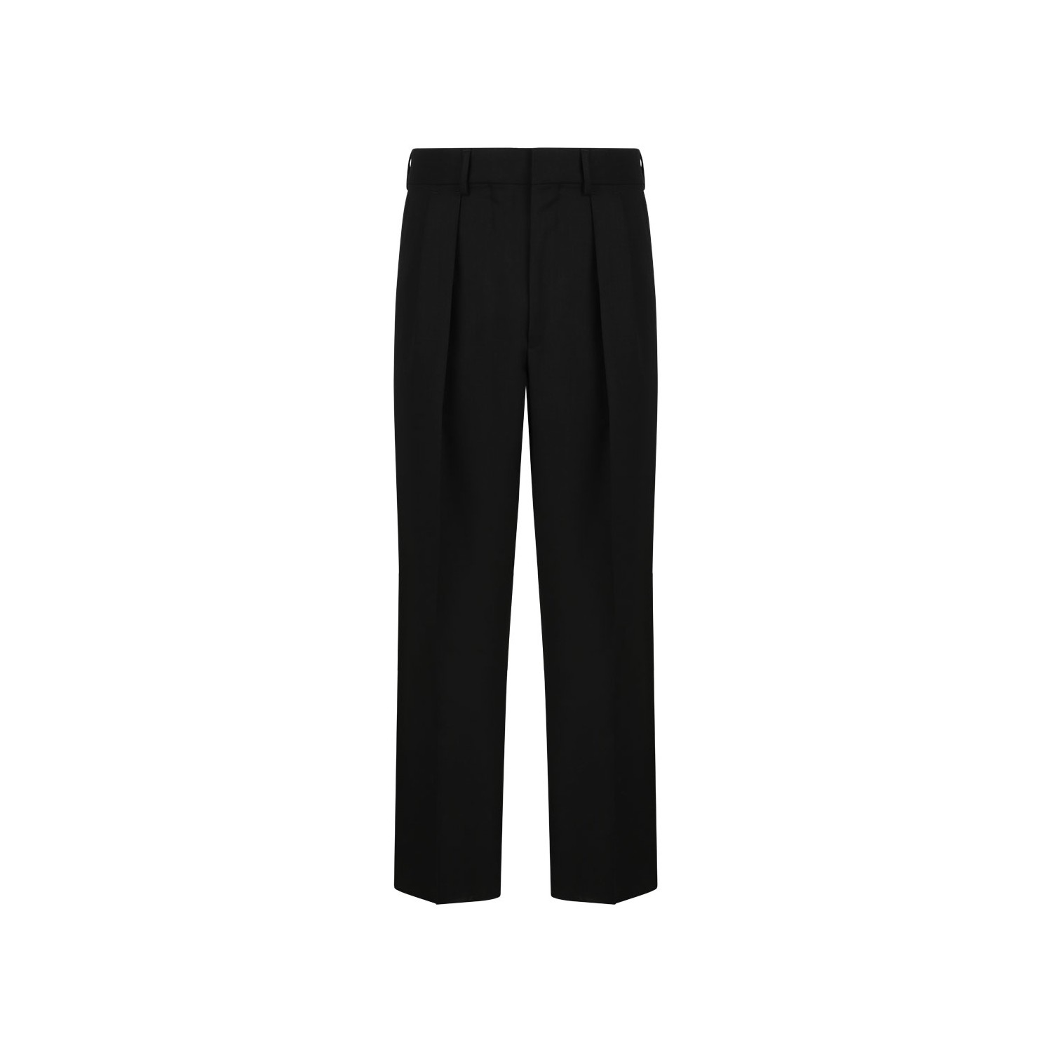 Tom Ford Black Pleated Front Trousers. Black pleated-front trousers with straight leg, mid-rise waist, button fly and side pockets.