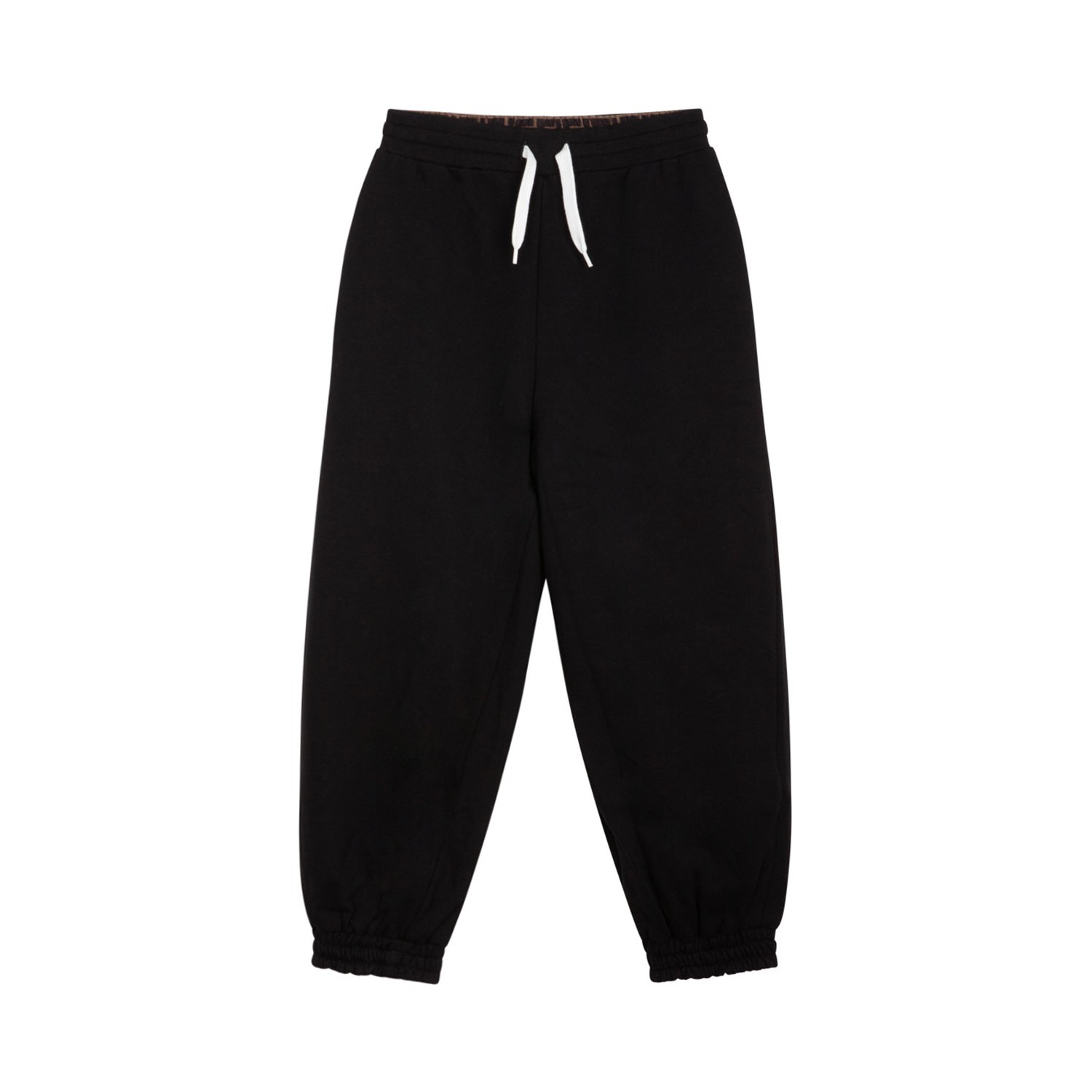 Fendi Kids Logo Print Track Pants. Black track pants, all over FF logo print, elasticated waistband. Front tie fastening and elasticated ankles.