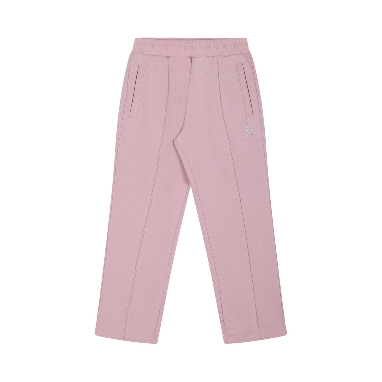 Golden Goose Kids Pink Jogging Pants. Pink cotton jogging pants with glitter star printed to the side, wide leg.
