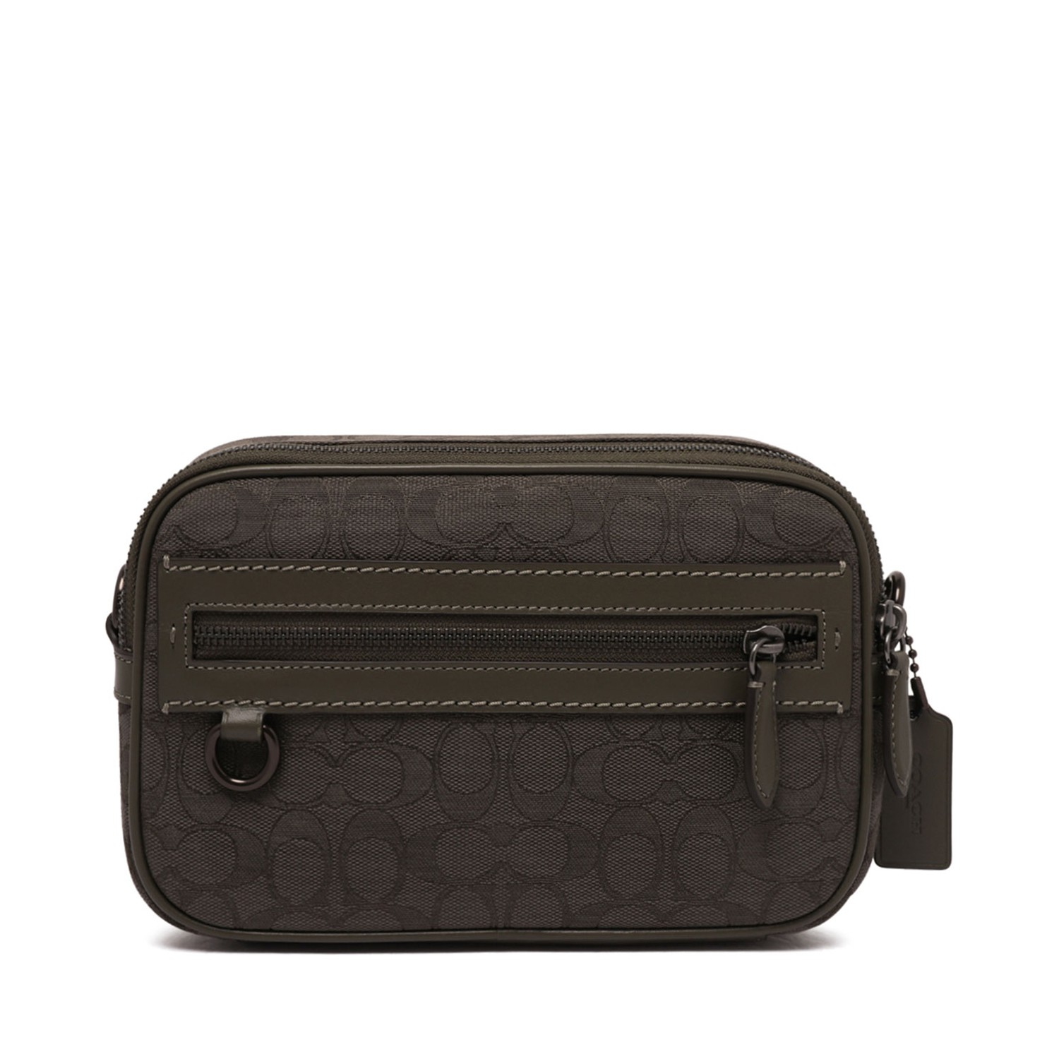 Coach Olive Theo Jacquard Signature Camera Bag. Olive Theo camera bag crafted from refined leather and our signature lightweight jacquard, this versatile style features convenient exterior pockets and a detachable canvas strap for hands-free carrying.