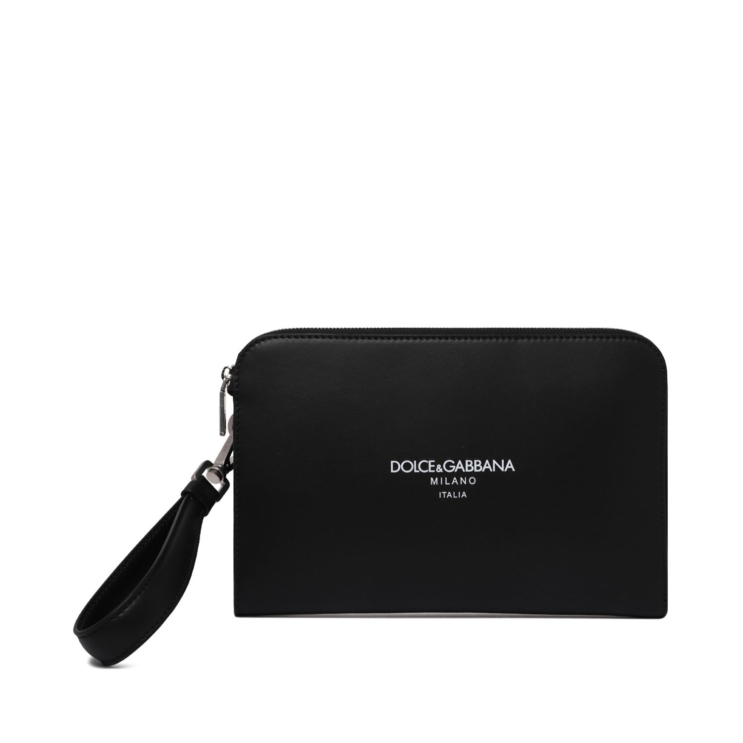 Dolce & Gabbana Black Leather Clutch Bag. Black calf leather clutch bag with all around zip fastening, main compartment, logo print to the front.