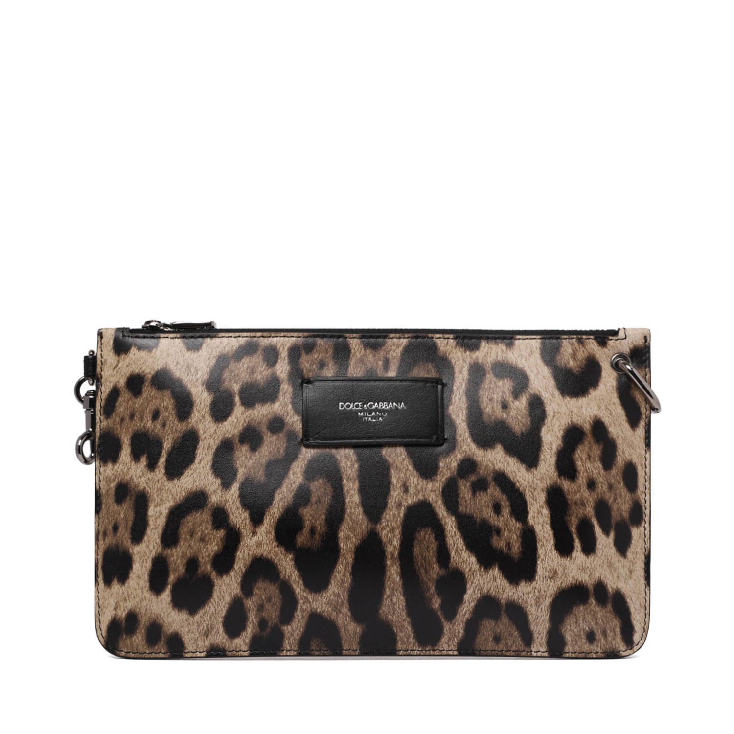 Dolce & Gabbana Leopard Print Toiletry Bag. Leopard print calf leather toiletry bag with top zip fastening, detachable shoulder strap, full lining, logo patch to the front.